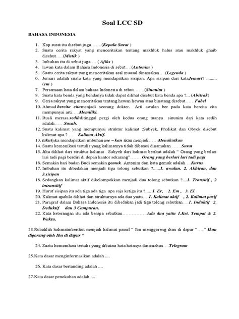 15. ada yang bisa rekomen contoh soal buat latihan lcc bahasa indonesia g? tapi buat kelas 6